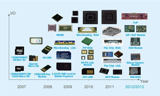 SiP系統集成封裝技術,已成功開發了RF-SIM;Micro SD;USB;FC-BGA;LGA module等一系列產品。